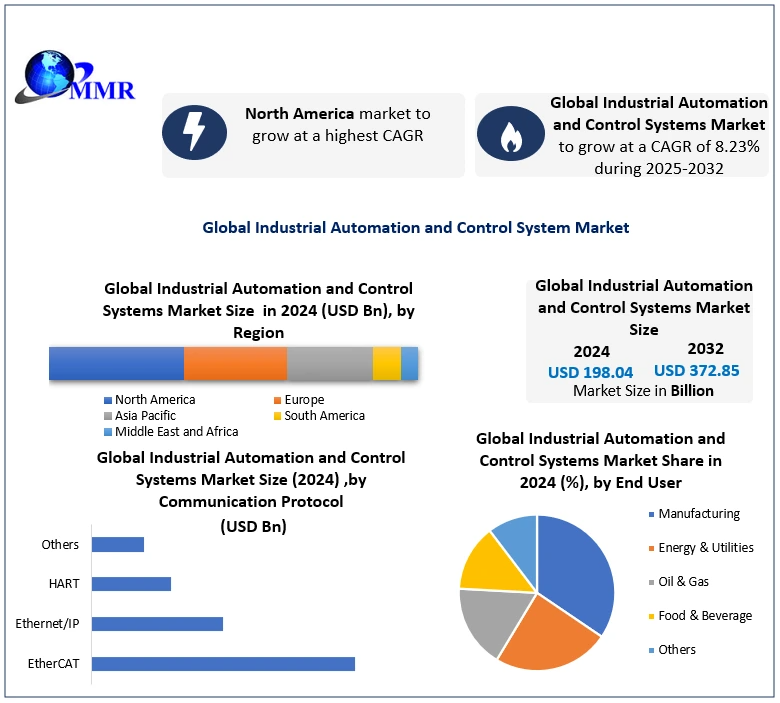 WILMINGTON, DE, UNITED STATES, November 28, 2025 /EINPresswire.com/ -- Global Industrial Automation and Control Systems Market size was valued at USD 198.04 billion in 2024 and is projected to grow at a CAGR of 8.23% from 2025 to 2032, reaching an estimated USD 372.85 billion.— Dharti Raut